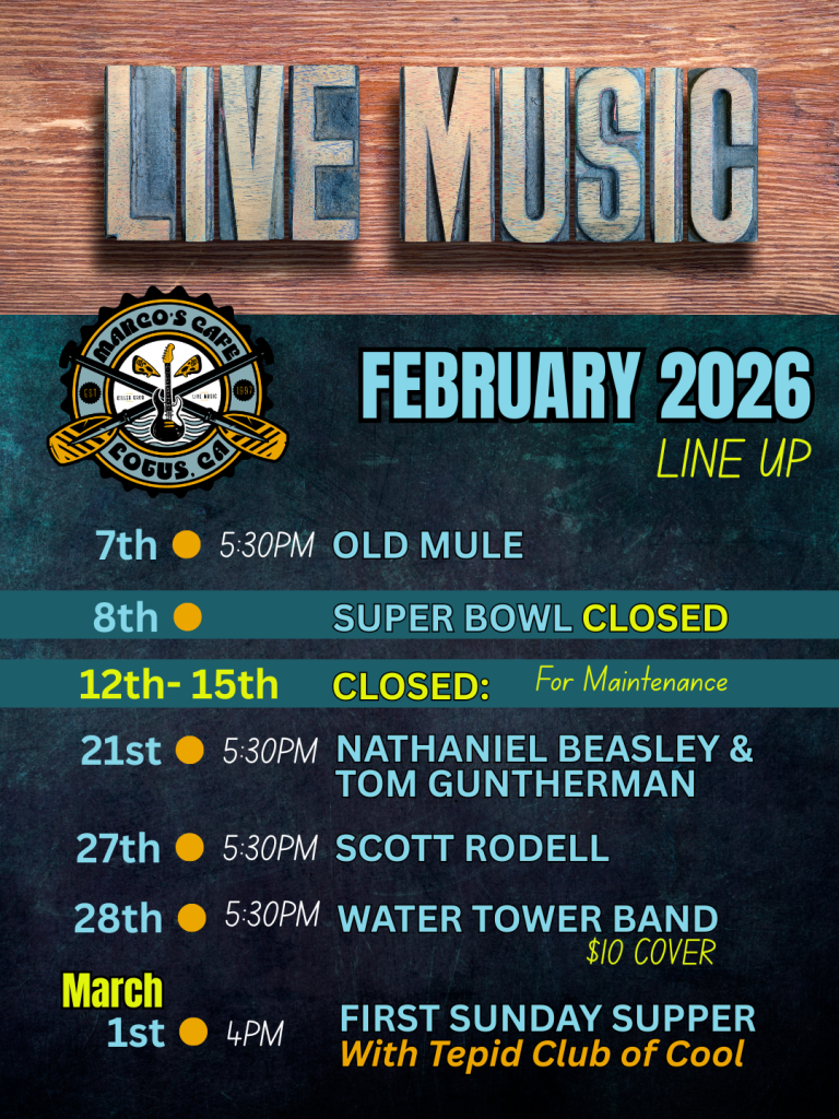 It’s February! We’ve got some great musical talent joining us this month. We hope to you you all here at Marco’s.