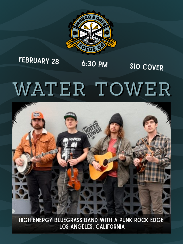 See you February 28th at 6:30 PM for the return of Water Tower. They haven’t been to town in a while. Let’s give them a warm welcome. COme early, grab some wood fired pizza, and enjoy!